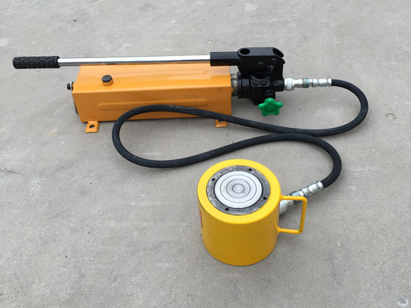 8、使用時先將手動泵的快速接頭與頂對接,然后選好位置,將油泵上的放油螺釘旋緊,即可工作。欲使活塞桿下降,將手動油泵手輪按逆時針方向微微旋松,油缸卸荷,活塞桿即逐漸下降。否則下降速度過快將產(chǎn)生危險。