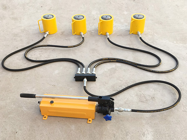 7、如需幾只千斤頂同時起重時,除應(yīng)正確安放千斤頂外,應(yīng)使用多頂分流閥,且每臺千斤頂?shù)呢摵蓱?yīng)均衡,注意保持起升速度同步。還要考慮因重量不勻地面可能下陷的情況,防止被舉重物產(chǎn)生傾斜而發(fā)生危險。