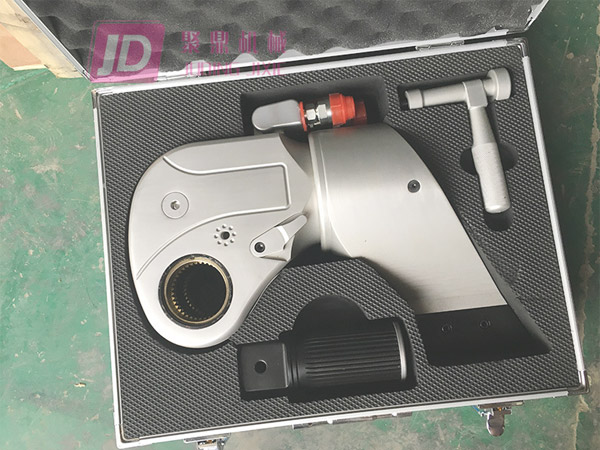 驅(qū)動(dòng)式液壓扳手屬于液壓扭矩扳手中的一種。YD型液壓扳手結(jié)構(gòu)緊湊,體積小,重量輕,輸出扭力大,是螺帽拆卸和螺栓預(yù)緊的得力工具。扭力控制在此3%范圍內(nèi),能滿足聯(lián)接預(yù)緊高精度扭力值的要求。單向棘輪棘爪機(jī)械防止驅(qū)動(dòng)軸逆轉(zhuǎn),確保操作可靠,可調(diào)整支承力臂,充分適應(yīng)不同作業(yè)環(huán)境,不受空間限制,操作得心應(yīng)手。 標(biāo)準(zhǔn)四方形驅(qū)動(dòng)軸,配合不同規(guī)格套筒,適合多種場合應(yīng)用。